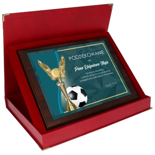 Dyplom drewniany z etui Tryumf z nadrukiem UV srebrna blaszka