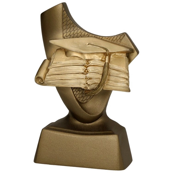 - Odlewana statuetka szkolna przedstawiająca atrybuty szkolnictwa. Dzięki eleganckiej kolorystyce doskonale będzie się prezentować na półce z trofeami. To znakomity pomysł na indywidualne wyróżnienie w konkursach szkolnych lub na zakończenie roku szkolnego