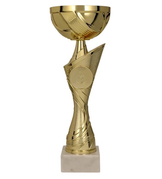 - Złoty metalowy puchar z miejscem na emblemat tematyczny to idealna nagroda dla zwycięzców. Puchar dostępny w różnych wysokościach.