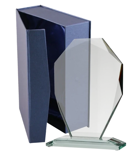 Trofeum szklane z rozklejoną podstawą z etui