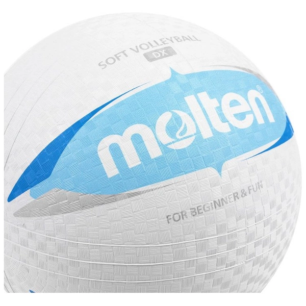Miękka gumowa piłka do siatkówki marki Molten model S2V1550-WC przeznaczona dla graczy początkujących i dzieci oraz do gry w wodzie.