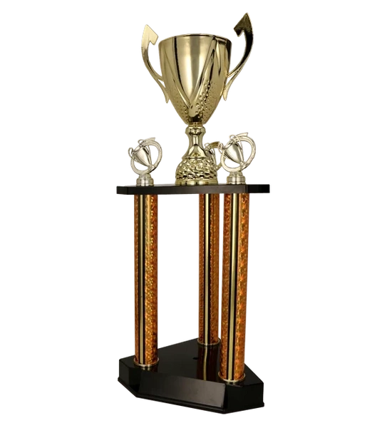 - Puchar złoty piętrowy z kolekcji DAMARI. Prestiżowy puchar z dodatkowymi figurkami pucharów to idealne uhonorowanie zwycięzcy najważniejszych zawodach.