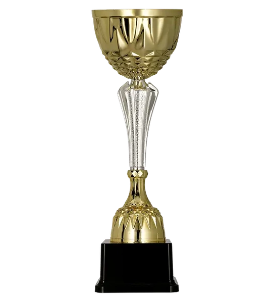 - Złoto-srebrny puchar okolicznościowy ze zdobionym złotym kielichem. Puchar dostępny w różnych wysokościach.
