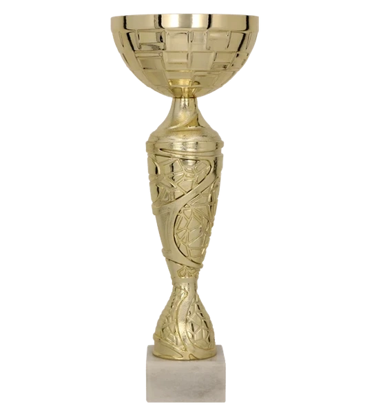 - Złoty, metalowy puchar na stabilnej podstawie z kolekcji TANGA. Puchar występuje w różnych wysokościach.