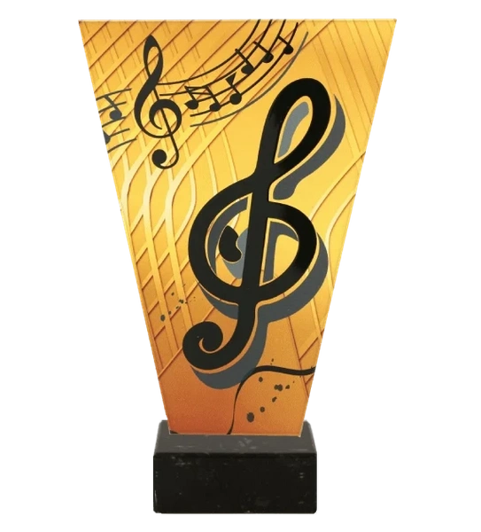 - Szklane trofeum z motywem muzycznym.