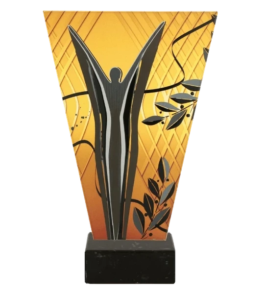 - Szklane trofeum z motywem ogólnym z nadrukowaną WIKTORIĄ.