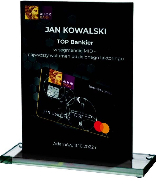 - Szklane trofeum wraz z nadrukiem kolorowym w cenie. Treść i wytyczne dedykacji prosimy umieścić w polu poniżej lub dodać plik projektu w odpowiednim polu w koszyku - nasi graficy prześlą wizualizację realizacji!