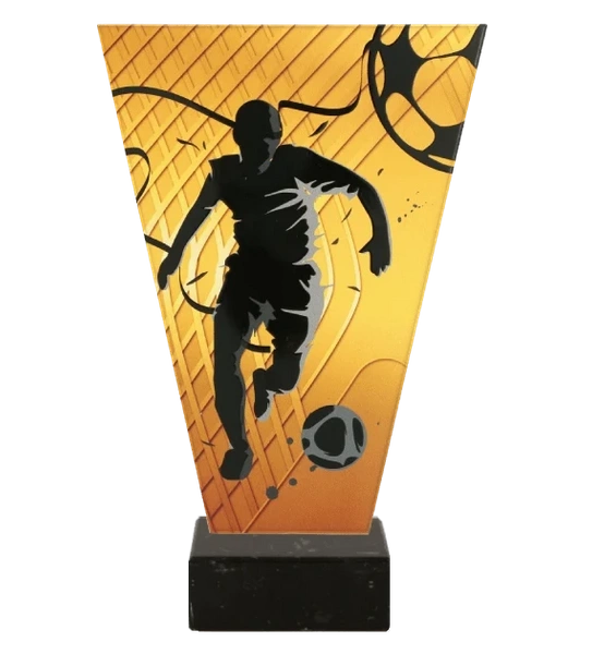 - Szklane trofeum z motywem piłki nożnej.