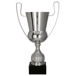 - Srebrny, metalowy puchar o klasycznym wyglądzie. Uniwersalny design pozwala uhonorować zwycięzców różnych dyscyplin. Puchar z uszami występuje w różnych wysokościach.