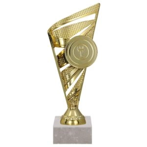 - Złoty puchar o eleganckim designie, który może być uhonorowaniem zwycięzcy różnych dyscyplin. Puchar wysokości 23 cm. Emblemat do wyboru 50/25mm.
