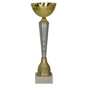 - Złoty-srebrny puchar o eleganckim designie, który może być uhonorowaniem zwycięzcy różnych dyscyplin. Puchar wysokości 40,5 cm