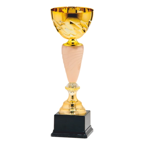 Złoty puchar z beżowym elementem o wysokości 38cm - uniwersalna nagroda na zawody i turnieje.