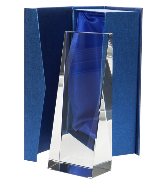 Szklane trofeum o wymiarach 20x8cm i grubości 5cm.