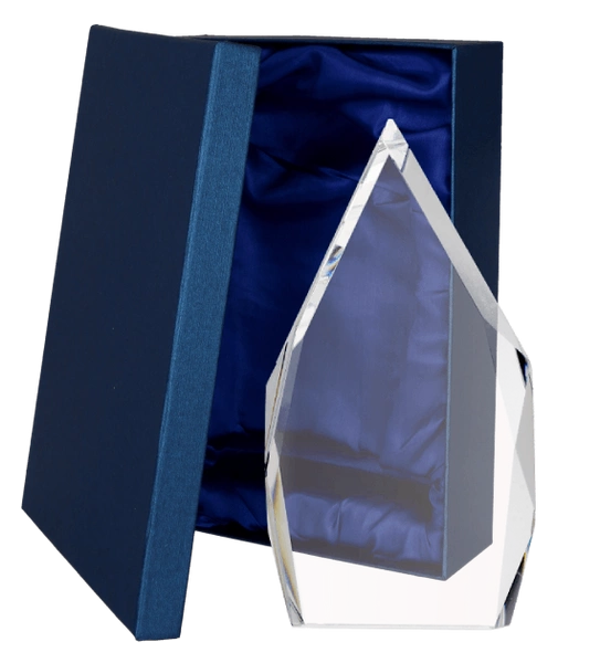 Nowoczesne trofeum szklane o eleganckim wyglądzie. Posiada estetyczną formę i transparentną powierzchnię. Trofeum o wymiarach 24,5x14cm i grubości 3cm.