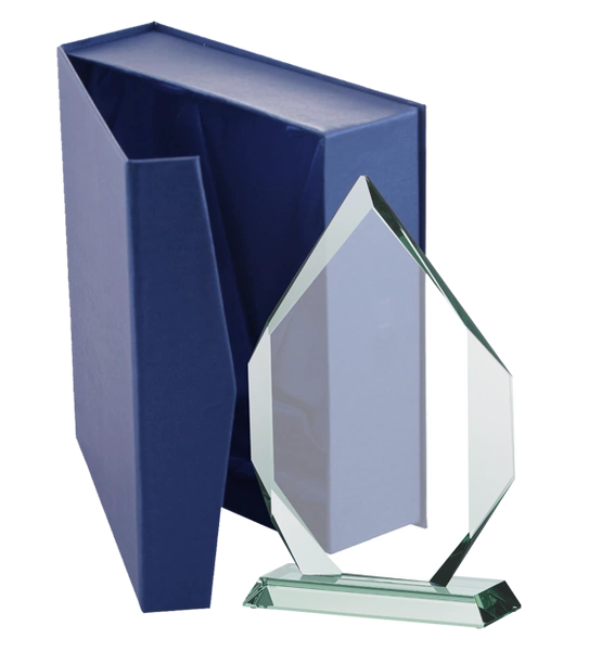 Nowoczesne trofeum szklane o eleganckim wyglądzie. Posiada estetyczną formę i transparentną powierzchnię. Trofeum o wymiarach 27x17cm i grubości 1,9cm.