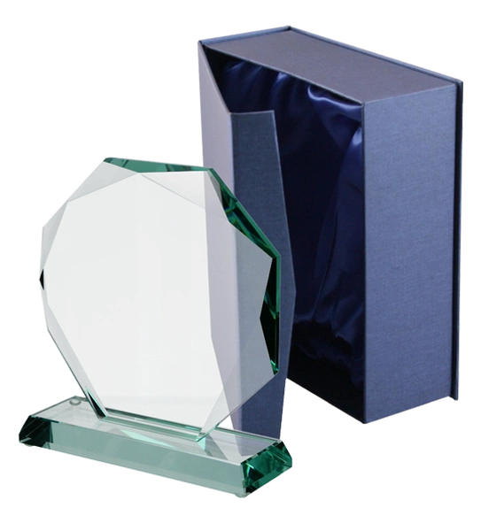 Nowoczesne trofeum szklane o eleganckim wyglądzie. Posiada estetyczną formę i transparentną powierzchnię. Trofeum o wymiarach 19,5x17cm i grubości 1,9cm.