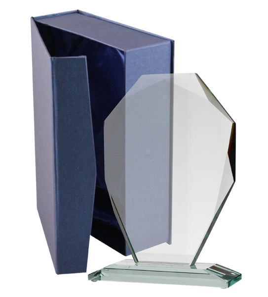 Nowoczesne trofeum szklane o eleganckim wyglądzie. Posiada estetyczną formę i transparentną powierzchnię. Trofeum o wymiarach 24x16cm i grubości 1,9cm.