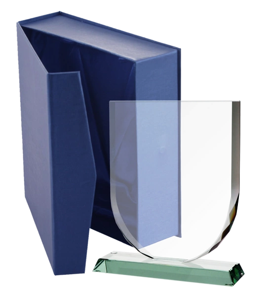 Nowoczesne trofeum szklane o eleganckim wyglądzie. Posiada estetyczną formę i transparentną powierzchnię. Trofeum o wymiarach 19x14cm i grubości 1,9cm.