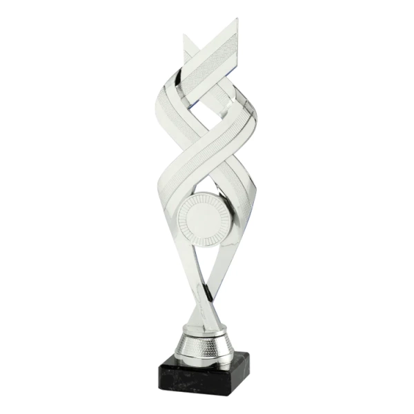 - Puchar srebrny plastikowy na marmurowej podstawie o uniwersalnym charakterze.