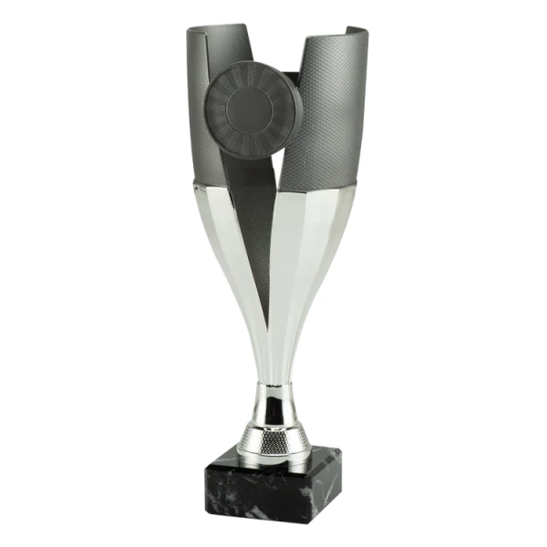 - Puchar srebrny plastikowy na marmurowej podstawie o uniwersalnym charakterze.