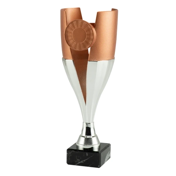 - Puchar brązowy plastikowy na marmurowej podstawie o uniwersalnym charakterze.