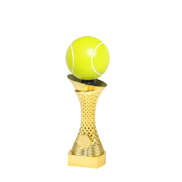 - Puchar złoty, wykonany z plastiku na plastikowej podstawie o sportowym charakterze.