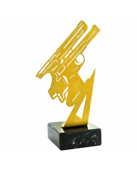 - Statuetka złota, wytworzona z metalu na plastikowej podstawie o sportowym charakterze.