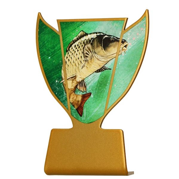 - Złota statuetka o eleganckim designie, który sprawia że idealnie nadaje się na zawody wędkarskie. Statuetka wysokości 10cm