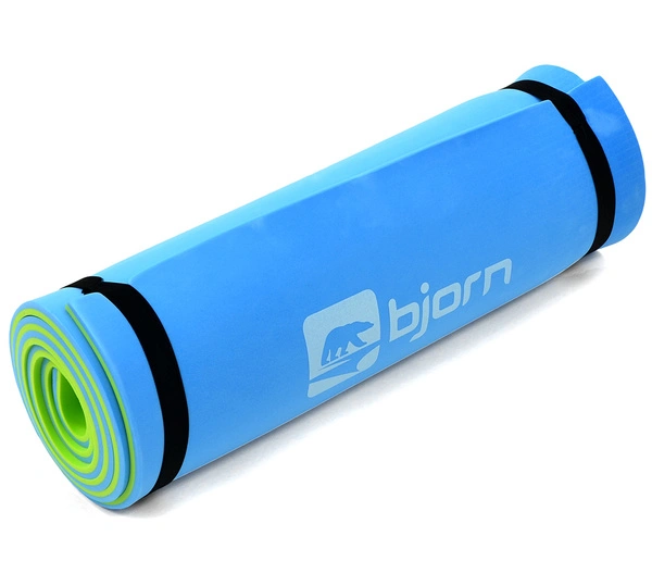 Karimata marki Bjorn w kolorze niebiesko-zielonym została wykonana z miękkiej i elastycznej pianki EVA, która pod wpływem nacisku sprężynuje zamiast się odkształcać. Doskonale sprawdzi się jako warstwa izolacyjna w namiocie, tworząc posłanie wygodniejszym i cieplejszym.
